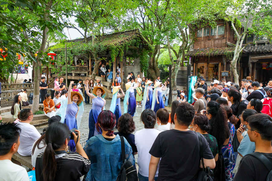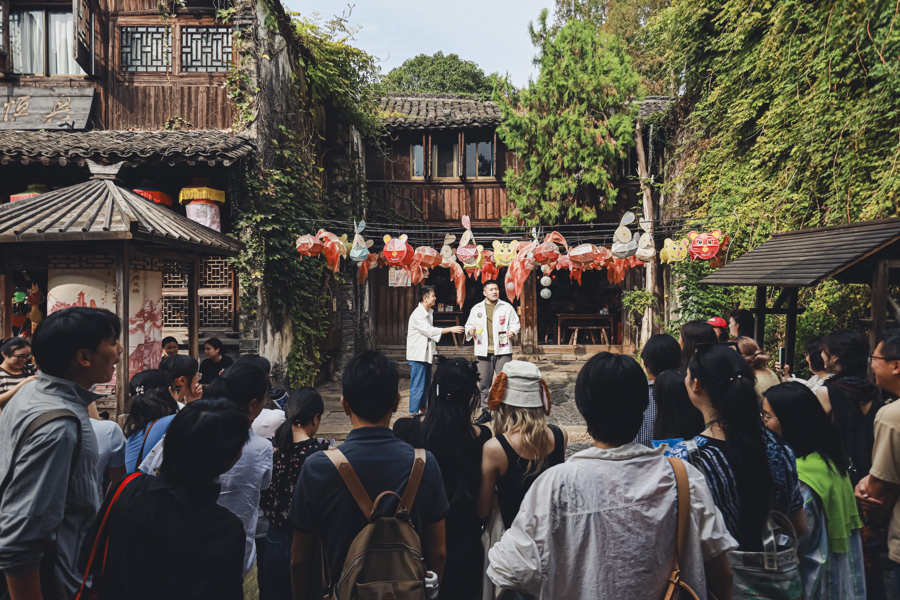 伴随着戏剧节的启幕,西栅的青石板路被巡游的音乐和脚步点燃。街巷、桥边、河岸,古镇的每一处都成了没有边界的舞台。偶戏、肢体剧、环境互动剧、默剧、魔术戏剧、即兴戏剧、少儿戏剧……每一个转角皆可邂逅表演,每一座桥头或许正传来歌声。