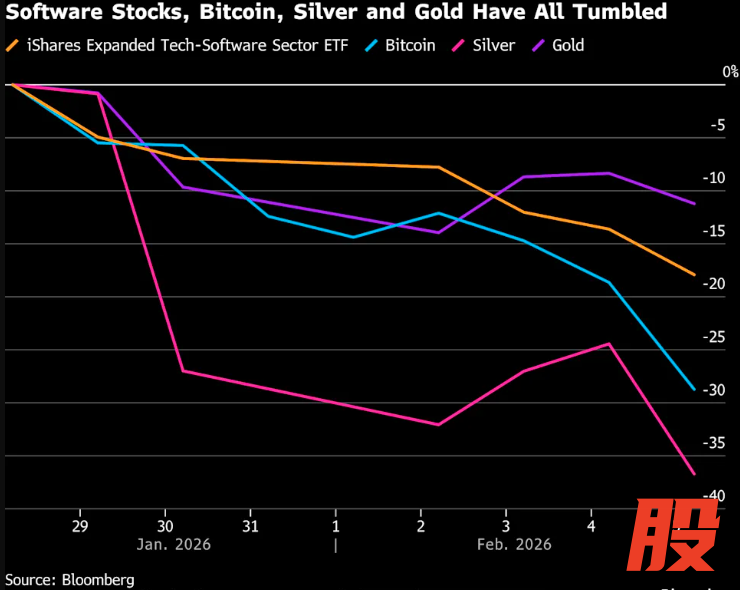 从表面上看,此轮跨资产抛售并没有单一诱因——不像去年四月美国总统特朗普掀起的“解放日”贸易战曾令市场陷入恐慌性暴跌。相反,当前的市场更像是被一连串利空消息“钝刀子割肉”。这些新闻不断加剧了市场对估值虚高的集体焦虑——毕竟许多人早已怀疑行情过热——最终诱发了投资者的同步撤资。