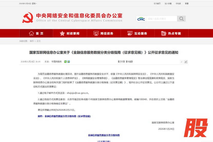 国家互联网信息办公室近日发布了《金融信息服务数据分类分级指南(征求意见稿)》,该指南详细规定了金融信息服务数据的分类方法,包括业务数据、用户数据和企业数据的三级分类,以及核心数据、重要数据、敏感一般数据和常规一般数据的四级分级。此指南旨在规范金融机构的数据处理活动,提升数据安全水平,确保金融信息服务的安全性和合规性。意见反馈截止至2026年2月23日,意味着金融行业数据合规进入“精细化管控”新阶段。